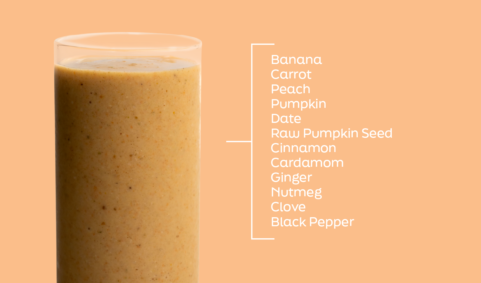 This fall-flavored smoothie is like a cozy hayride for your taste buds. Creamy banana and peach bring the sweet, pumpkin and carrot add earthy depth, and a swirl of warming spices (cinnamon, ginger, nutmeg, and friends) makes every sip taste like autumn just hugged you. Tart raspberries keep it bright, while pumpkin seeds sneak in a little crunch-free power.
