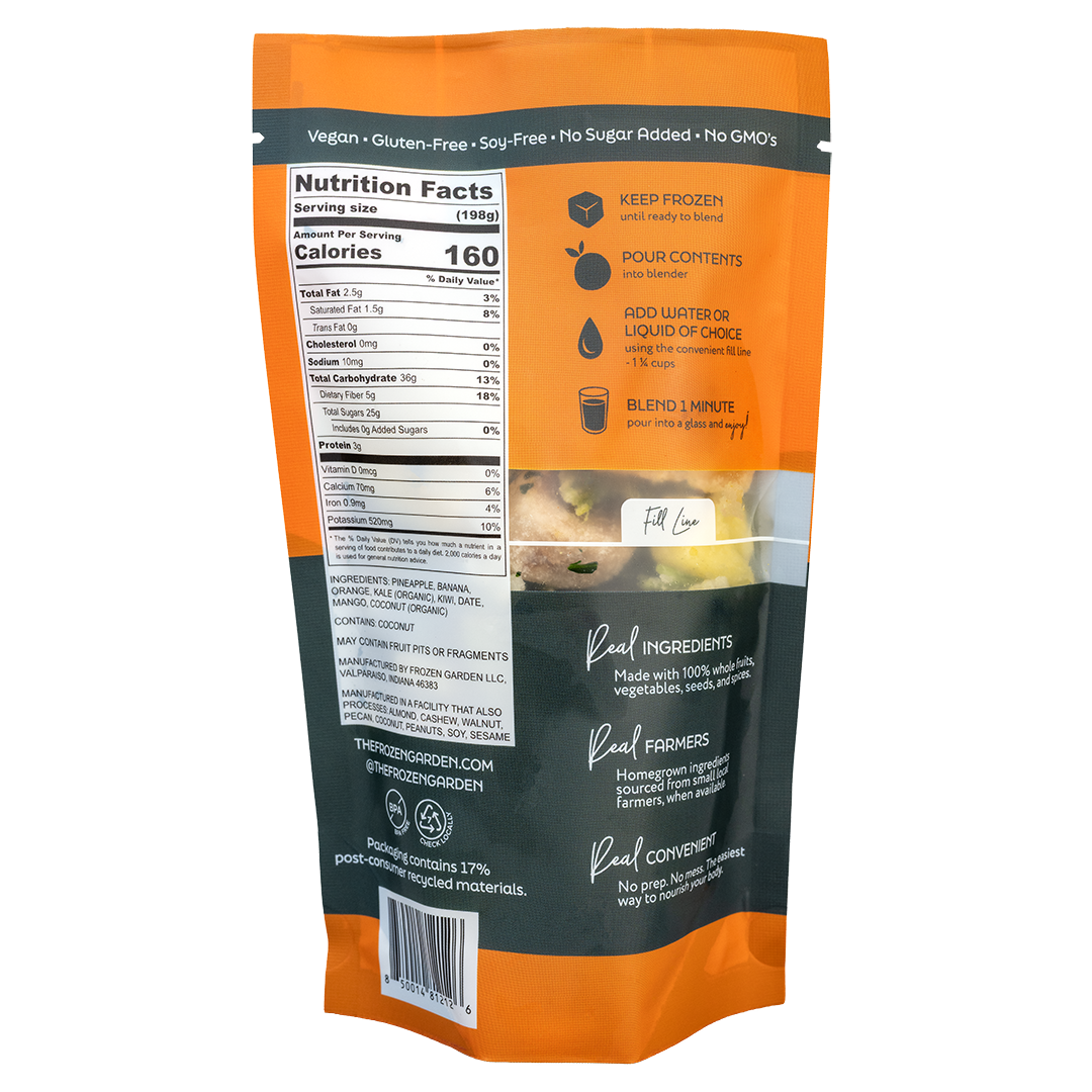 This vibrant green smoothie mixes pineapple, mango, banana, kiwi, orange, coconut, and spinach for a bold, fruity flavor that’s as refreshing as it is sneakily nutritious. No added sugar. No blender drama.