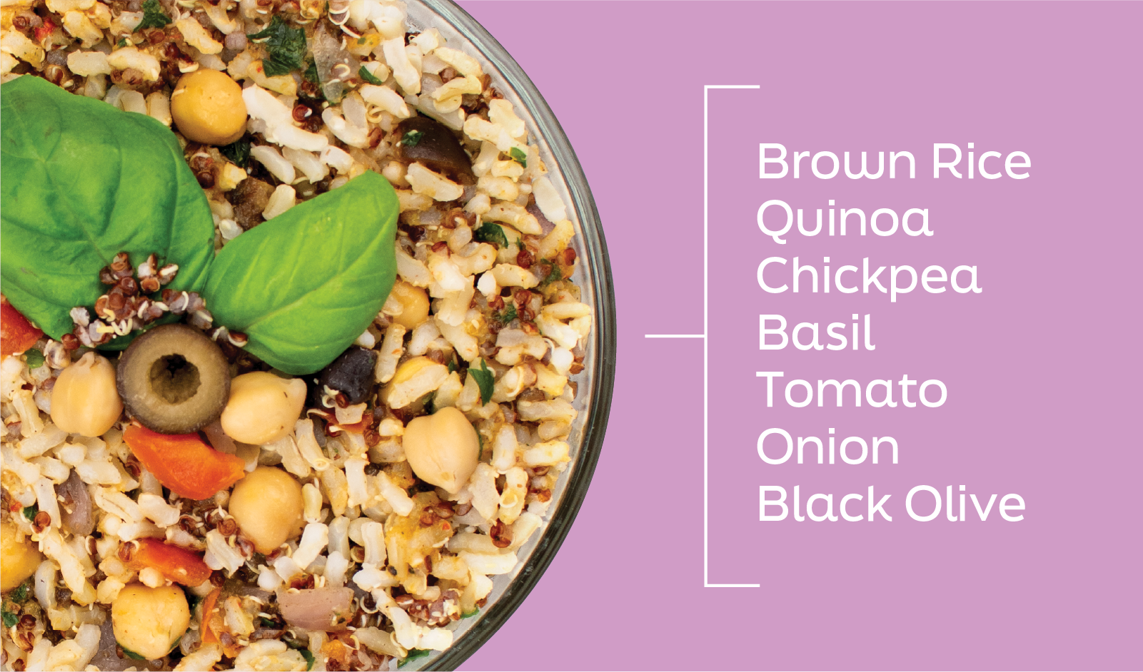 This plant-powered bowl brings the Mediterranean without the meal prep. Chickpeas, quinoa, tomatoes, onions, and olives get dressed up in balsamic and herbs for a warm, savory, satisfying bite—ready in minutes.