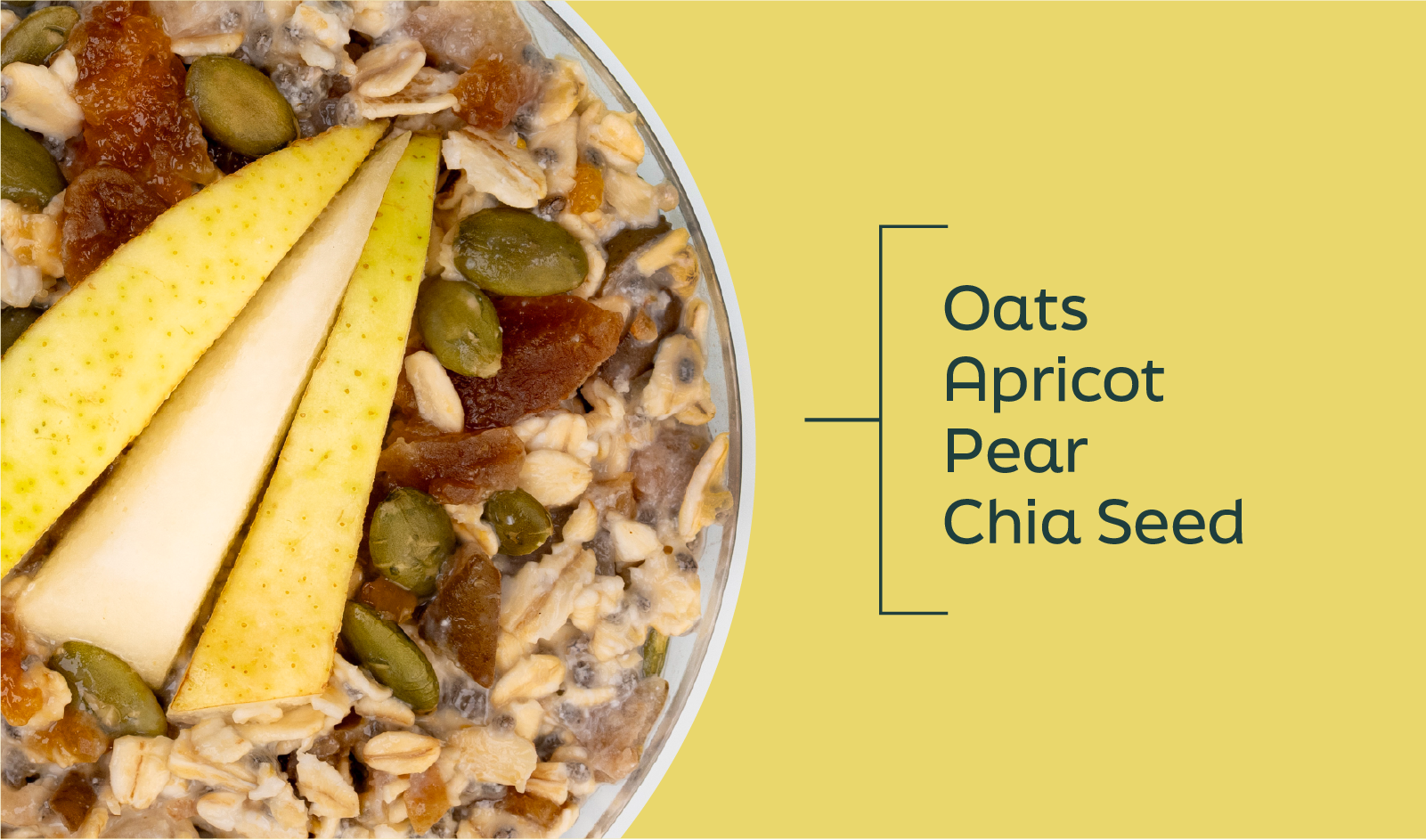 Dried apricots and pears meet creamy coconut milk, crunchy pumpkin seeds, and chia in this subtly sweet breakfast blend. It’s fruity, nutty, and quietly delicious.